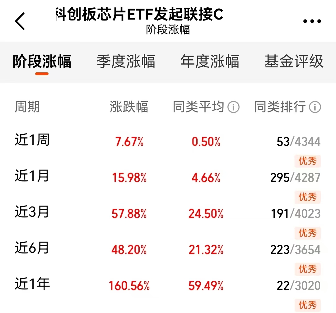 $南方上证科创板芯片ETF发起联接A$(021607)昨天4.61%的涨幅够猛吧?三个月57%,一年160%,这业绩够硬核!现在市场风口就在科创芯片这块,产业链上下游都在动。指数投资最省心,不用纠结选哪个,整个赛道一起上。行情来了就要跟,等来等去容易拍大腿。#指数操盘手集结令#