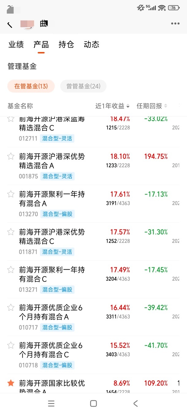 前海开源的基金都好差,都是50%以上亏损,名牌经理也不过如此,看不出水平有多高