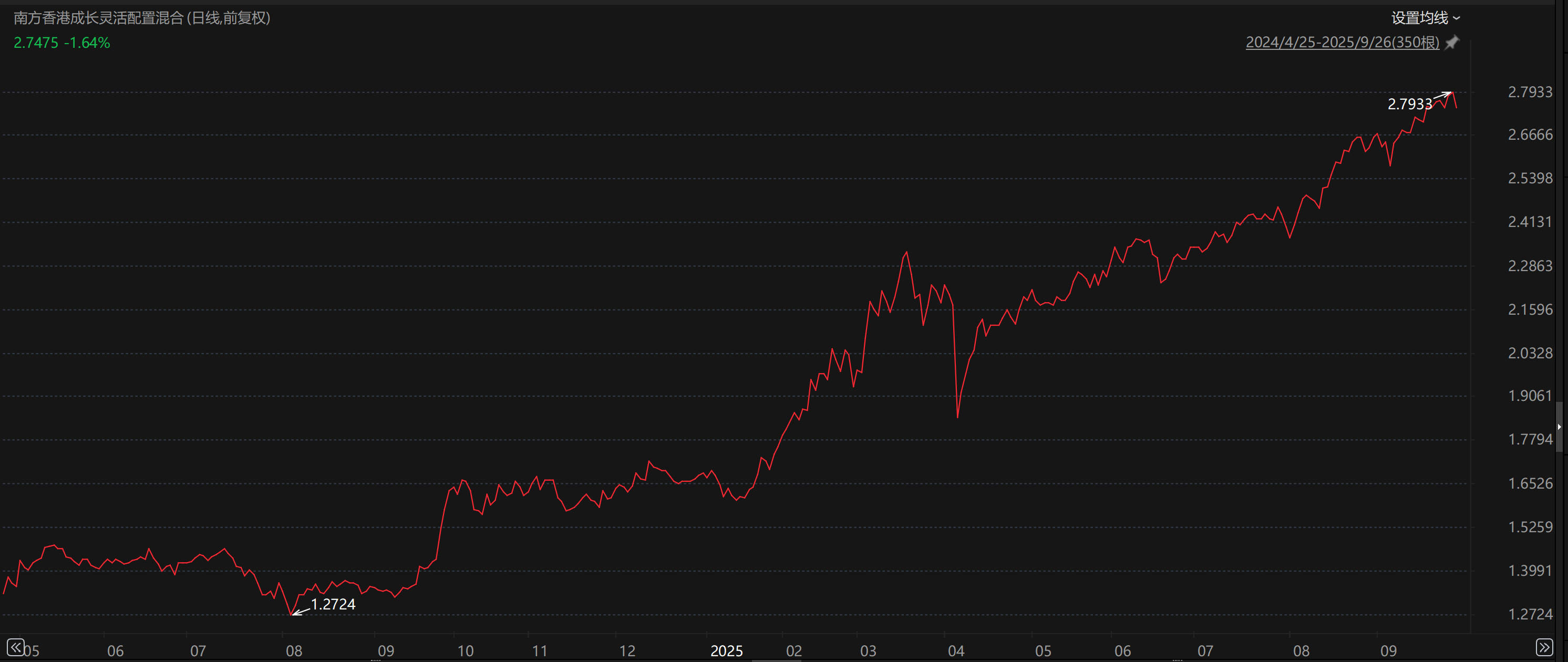 综合来看,$南方香港成长灵活配置混合$(001691)已成为布局港股结构性机会的优质工具。其投资组合紧密契合新消费变革与科技迭代的双主线逻辑,且基金规模适中(22.39亿元),在港股流动性环境下操作灵活。对于希望把握港股未来机遇的人而言,这只基金不仅具备对时代趋势的敏锐洞察,更通过严谨的风险控制为波动市场提供了缓冲空间。在港股估值修复与政策红利叠加的窗口期,借道此类历史业绩稳定、投研能力突出的主动管理基金,或许是参与这场资本盛宴的更优选择。#分享国庆见闻,晒收益,瓜分好礼!#