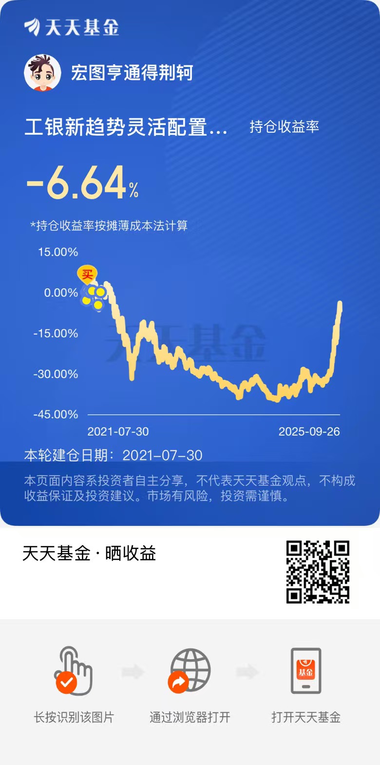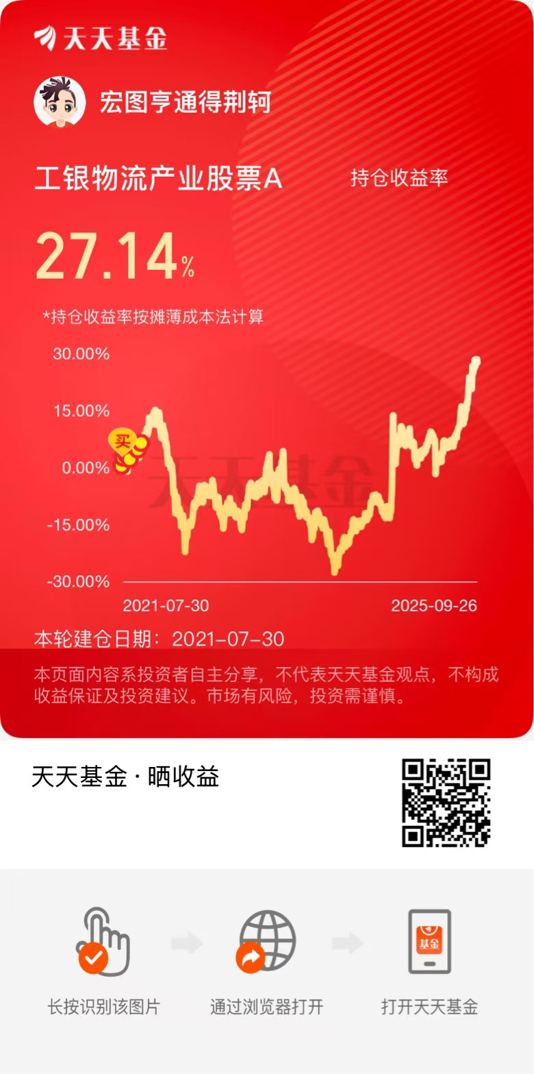 同一天买的物流和趋势,业绩相差33.78%,最近一个月何经理总算貌似睡醒了,涨幅终于跟上点节奏,就差几个点我就可以回本了,咋何经理抢跑了呢。换了个新人……