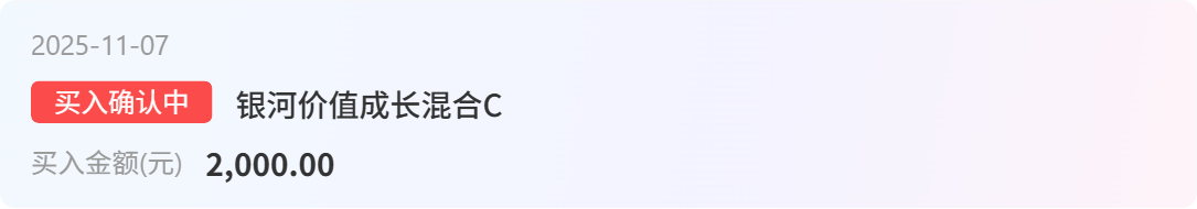 $银河价值成长混合C(OTCFUND|016341)$加仓2000元。