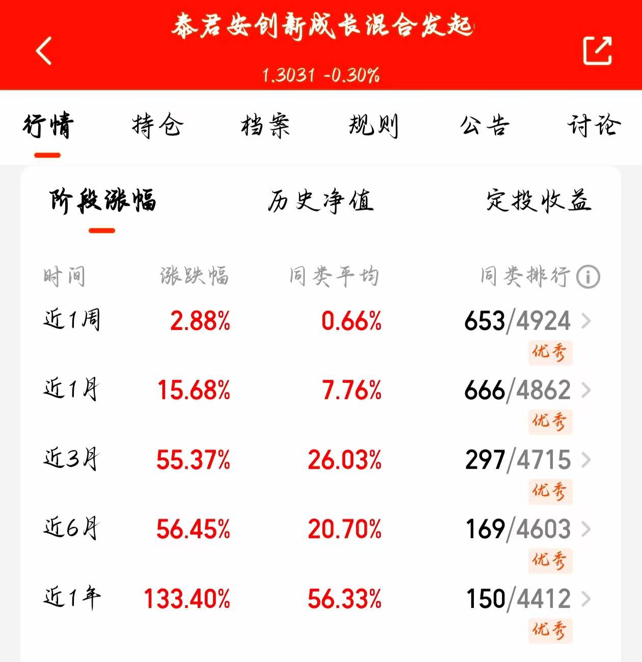 半导体跌了别怕,国泰君安创新成长持仓分散,业绩近一年翻倍,拿着安心。