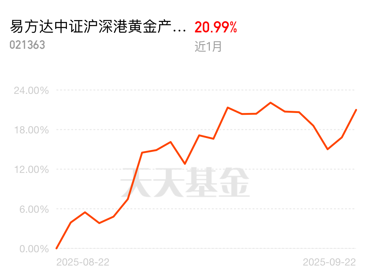 盘点近1月黄金基里的“优等生”,易方达中证沪深港黄金产业指数C有姓名,涨幅20.