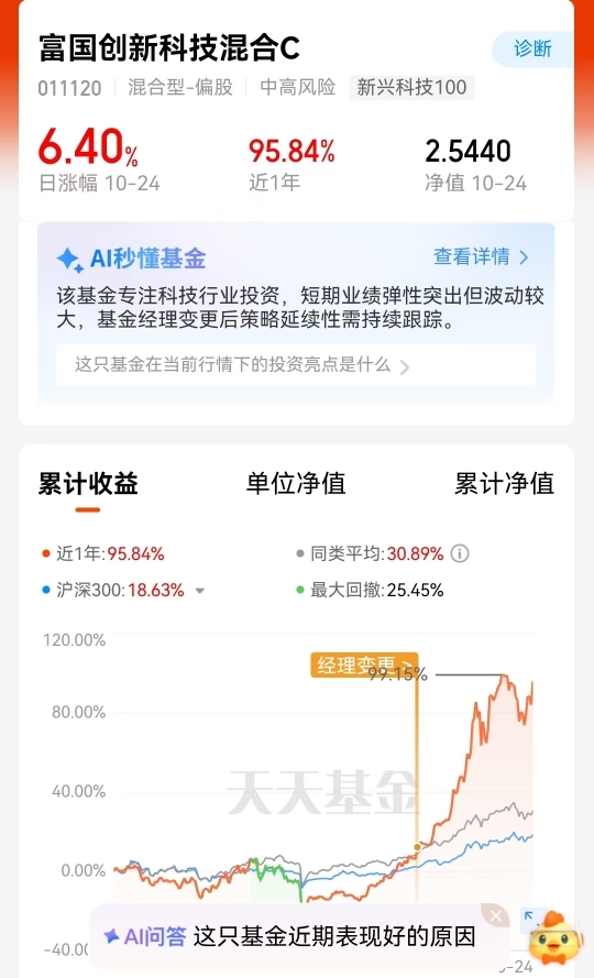 最近科技线太猛了!我手上的红土创新转型精选还在磨叽,富国创新科技C却悄悄涨了63