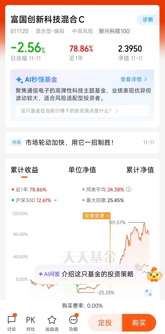 手里还搭红土创新新兴产业,又配了点富国创新科技C,看中它主投AI算力、光模块和半导体,近6个月涨了108%,超过大多数同类。