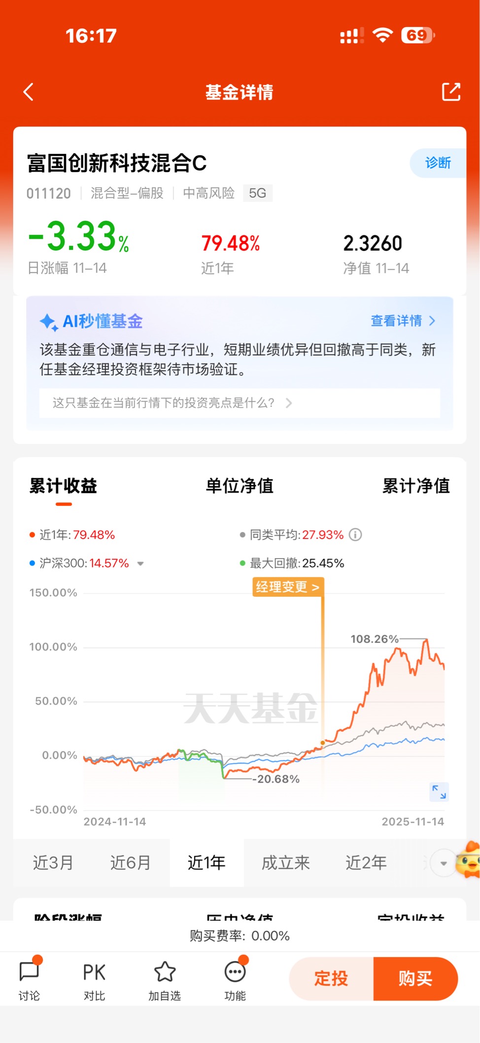 同时间持有着红土创新新兴产业和富国创新科技C,后者押中中际旭创、新易盛这些AI算力核心标的,近6个月涨了100%,在科技领域里确实跑得快。