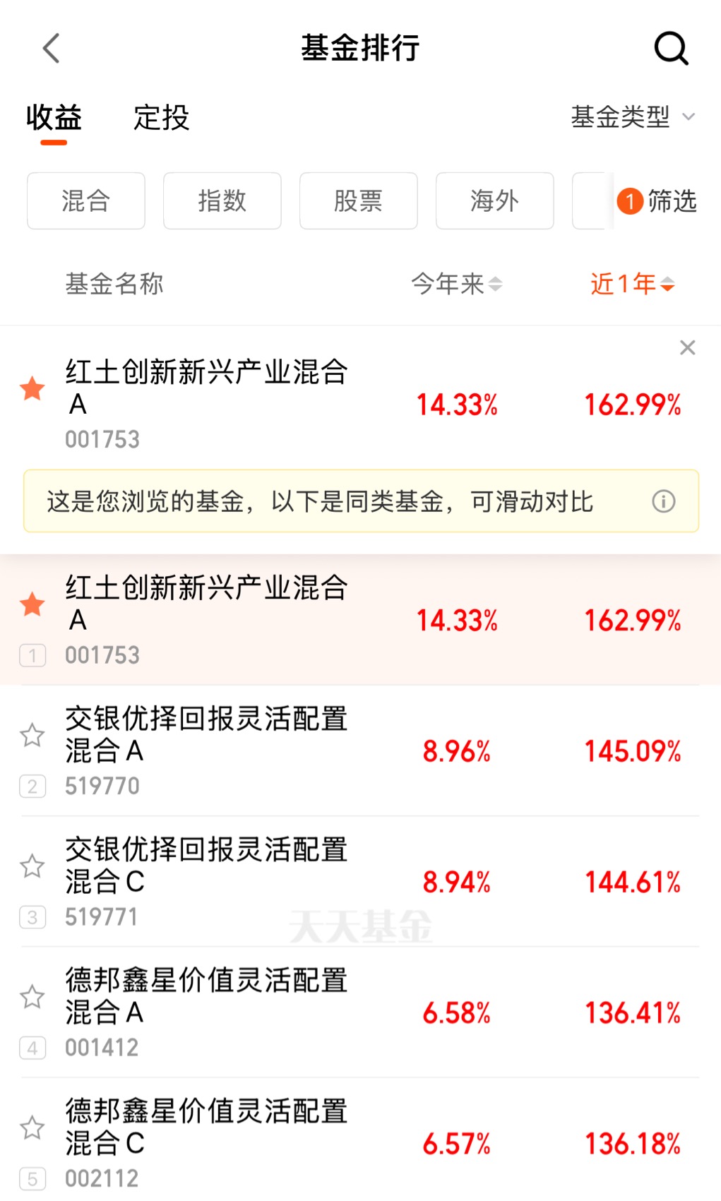红土创新新兴产业A(001753)近一年同类第一,且超第二名17.9%,这个幅度在公募圈里很少见。基金经理廖星昊的水平在于,他不仅能看准AI算力和CPO的大方向,更能在细分环节精准出击。今天市场调整,这种持续创造超额回报的能力,反而会让产品在这种行情里脱颖而出。#晒收益#
