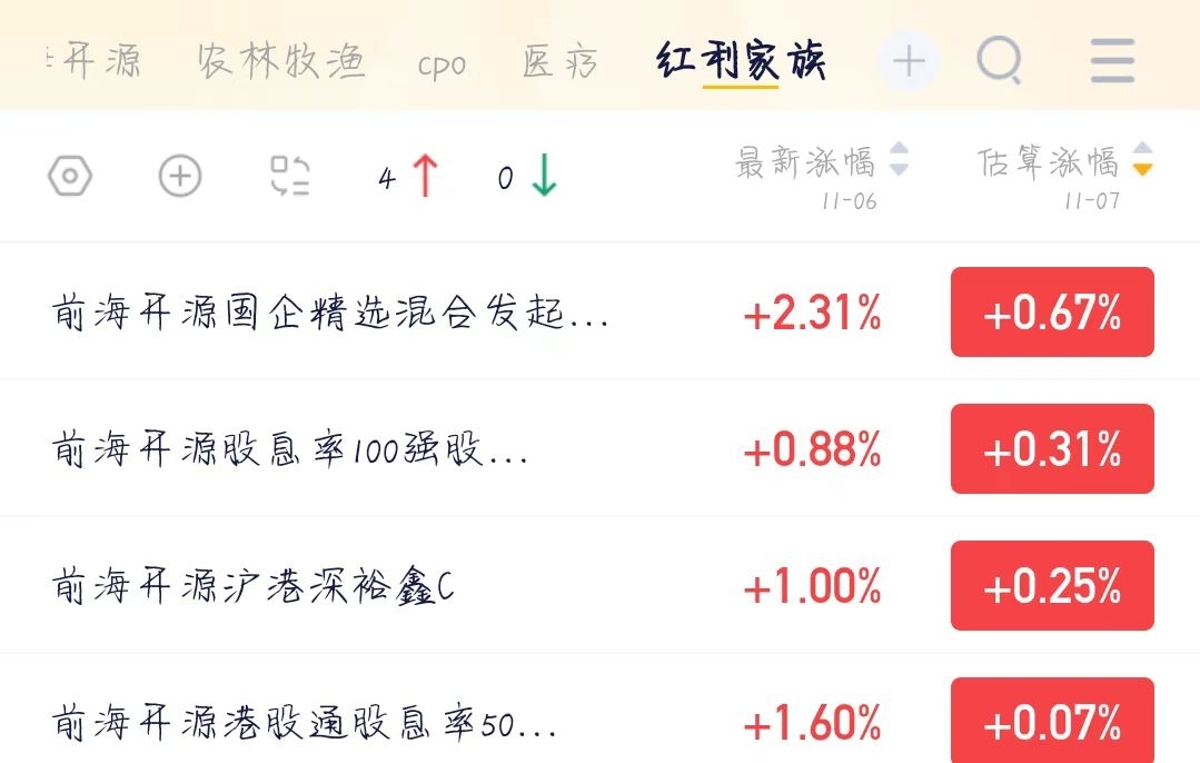 今天前海红利家族又是涨的,已上车,现在科技估值太高,可以适当转投红利。