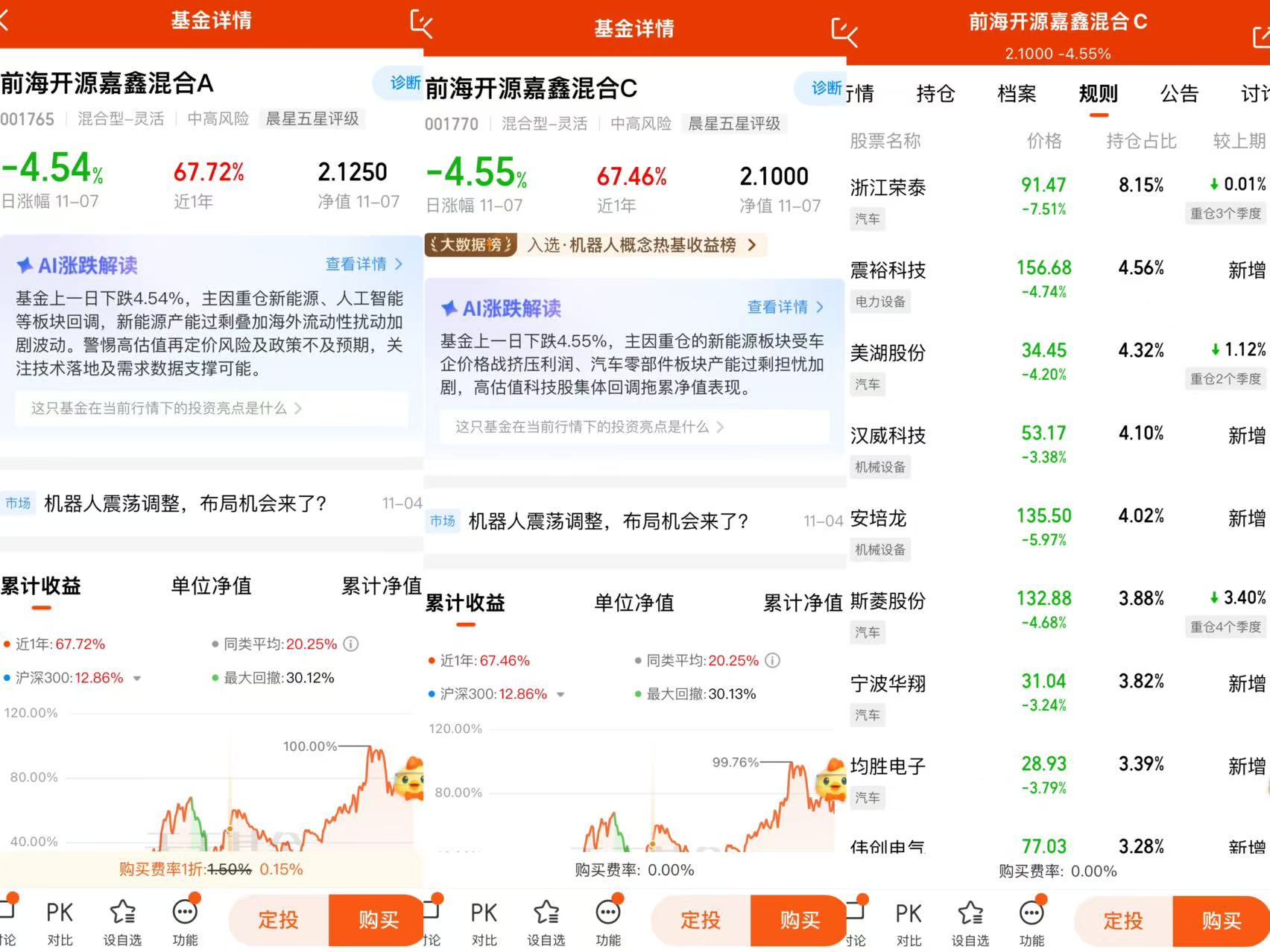 因此,对于弹性如此高的板块,相较于自己直接购买个股,莫过于选择一只非常让人放心的绩优机器人主题股票基,获得获取超额收益的同时又能在一定程度上减少投资风险。这时候,前海开源基金明星基金经理吴国清经理的晨星五星评级智能制造宝藏基——前海开源嘉鑫混合(A:001765;C:001770)就非常值得关注!前海开源嘉鑫混合(A:001765;C:001770)重点布局电力设备、机械设备和汽车产业,正是受益于高端制造尤其是人形机器人投资机会,获取机器人板块的高弹性收益!而且近期伴随着板块回调,正是投资者抄底的好时机!