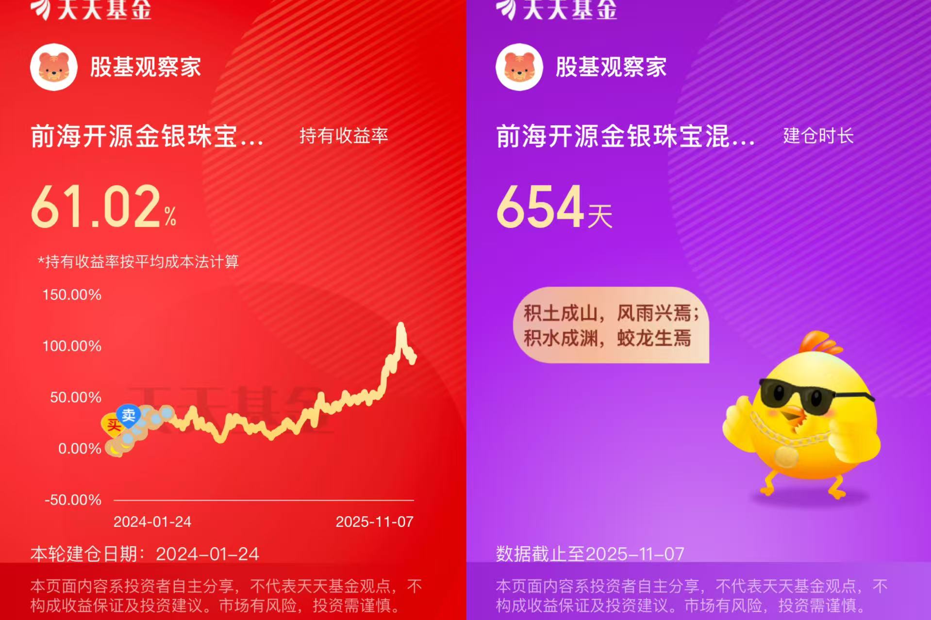 同时我还坚定持有吴国清经理的前海开源金银珠宝混合A(001302)至今,已经超过654天,同样获得了良好的投资体验。