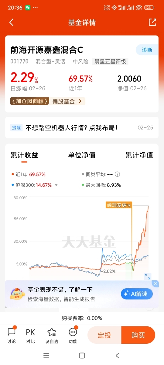 #宝藏基测评#我已将前海开源嘉鑫混合C加入自选,前海开源嘉鑫混合测评:聚焦人形机器人产业链的投资潜力。
