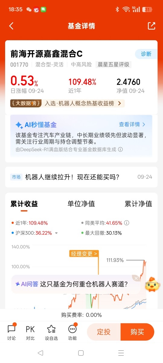 当时纠结了三天:一边是朋友劝 “AI 正热,别去冷门板块”,一边是看心仪的那只基金(重仓绿的谐波、埃斯顿)前三个月净值都没怎么动,怕踩 “冷板凳”。最后咬咬牙,先投了 30% 的闲钱,想着 “就算不涨,也先占个坑”。