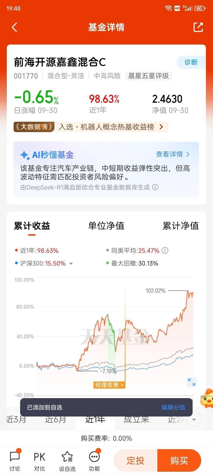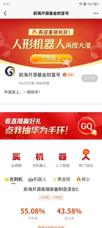 今年的投资市场可谓精彩纷呈,而机器人赛道无疑是其中最耀眼的明星之一。作为见证并参与这一波行情的投资者,笔者深刻体会到"错过"与"把握"之间的微妙差距。今天,就让我们聚焦一只近一年净值翻倍的明星基金——前海开源嘉鑫混合C(OTCFUND|001770),看看它为何能在机器人主题投资中脱颖而出。$前海开源嘉鑫混合C$
