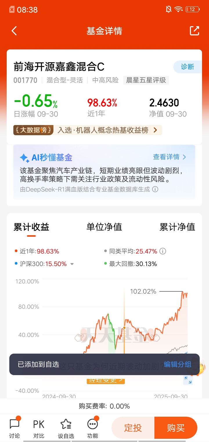 买入前海开源嘉鑫混合C后,它果然不负众望,经历了一段令人欣喜的快速上涨期。净值如同坐上了火箭,一路飙升,让我的资产实现了可观的增长。然而,市场的风云变幻总是难以捉摸。当市场情绪降温,基金净值出现了回撤,我的内心也不免泛起了波澜。但这一次,我没有像过去那样,在短期波动面前惊慌失措,急于“落袋为安”。