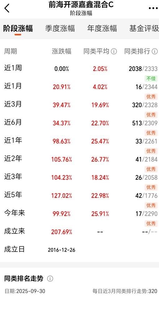 前海开源嘉鑫混合C或许不是最便宜的入场点,但它确实是一只质地优良、风格鲜明、管理稳定的优秀行业主题基金。它的高波动提醒我们要控制仓位,它的高收益也证明了坚持正确方向的重要性。
