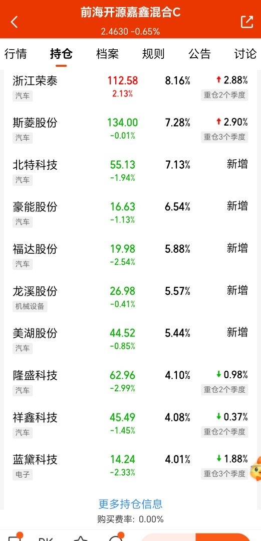 在筛选过程中,一只名为“前海开源嘉鑫混合C”的产品进入了我的视野。这只基金成立于2016年,至今已有超过8年的运作历史,由基金经理吴国清管理。更吸引我的是,该基金明确聚焦于汽车及机械设备行业,并采用“小盘平衡”风格,在机器人、新能源车、工业自动化等领域均有深度布局。