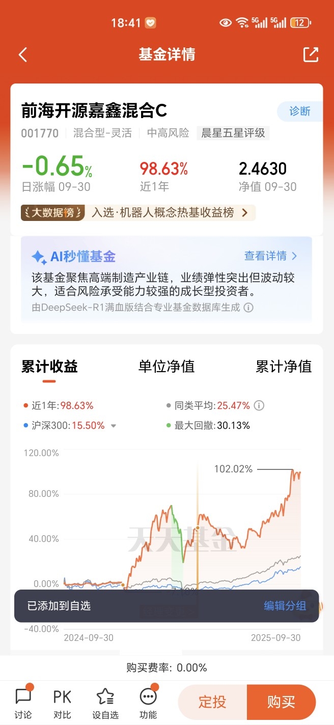 $前海开源嘉鑫混合C股票投资经历我的机器人投资始于2023年秋天。有一次加班后深