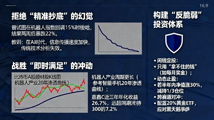 曾试图在机器人指数回调15%时梭哈,结果两周后暴跌22%。教训:在AI时代,信息传播速度加快,传统技术分析失效。