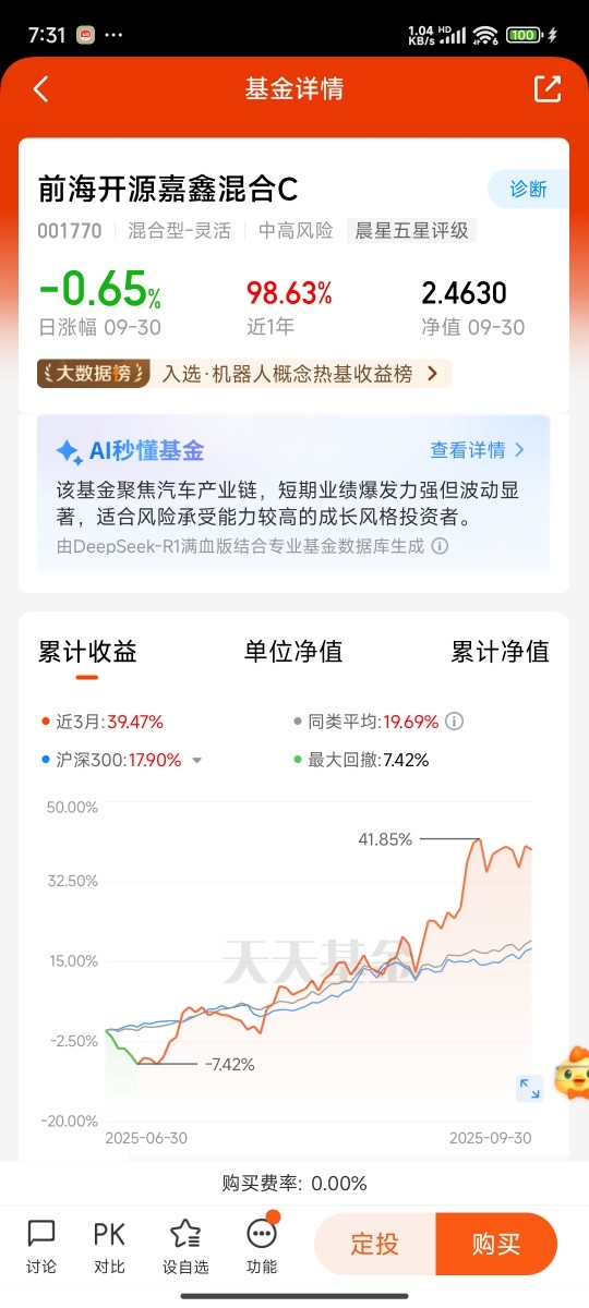 这种「全产业链+适度分散」的持仓,既抓住了机器人的主线,又避免了「一踩雷就崩」的风险。去年10月市场回调,这只基最大回撤才15%,比我之前买的单一机器人基(回撤25%)稳太多,当时就觉得「选对了」。