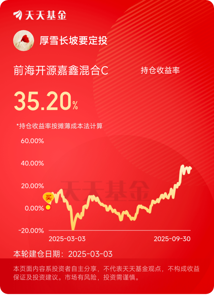 我已参加机器人神操作活动,我为$前海开源嘉鑫混合C$ 打CALL!从汽车制造的自动化车间到物流仓库里的分拣机器人,一股强大的技术驱动力正在渗透至经济运行的毛细血管。机器人不是昙花一现的概念,而是伴随着人口结构变化和效率提升需求的长期趋势。在筛选相关投资工具时,前海开源嘉鑫混合C进入了我的视野。它精准卡位机器人产业链的核心环节,布局了一批在伺服系统、控制器和智能算法领域有技术壁垒的公司。建仓之后,它一度强势上涨,迅速带来了可观的浮盈。然而,随后的回调也如期而至。面对账面的盈利回吐,我这次选择了按兵不动。我提醒自己,投资的核心是持有资产的价值本身,而非被市场情绪的钟摆所左右。我对基金经理的信任,源于他清晰的投资框架和对公司基本面的严格把控。我坚信,在自动化浪潮不可逆转的背景下,当前的波动只是长期上行曲线中的一个小浪花。这个过程极大地重塑了我的投资行为。我曾经是个“盯盘族”,市场的任何风吹草动都能牵动我的神经。但通过这次投资,我学会了与市场保持适当的距离。我明白了,频繁的交易和焦虑的盯盘,反而可能损害长期收益。真正的智慧在于选定方向后的耐心等待,让时间成为优秀企业的朋友。机器人代表着提升社会生产力的关键方向。最近市场调整,导致嘉鑫净值出现回落,但我视之为一个战略性的加仓窗口,因为驱动行业前进的基本面因素依然坚实。我相信前海开源基金团队风险控制的专业能力。我将继续持有嘉鑫,并愿意在市场出现恐慌时适时加仓,与这只基金一起,陪伴中国顶尖的机器人企业成长,分享时代赋予的红利。