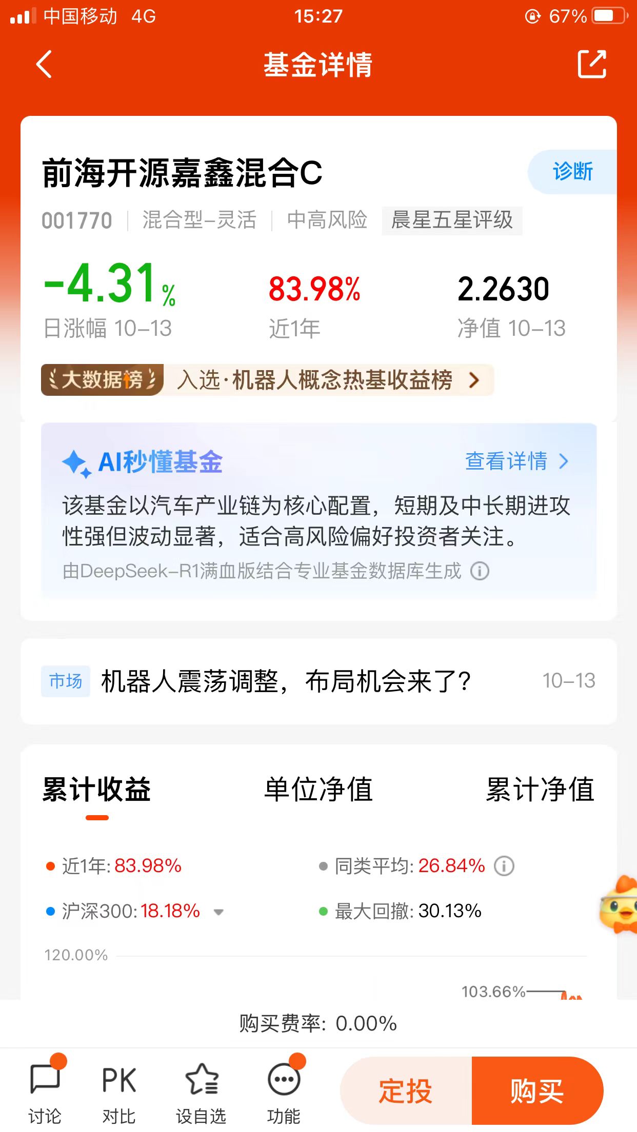 通过这种行业配置,前海开源嘉鑫混合C能够充分受益于人形机器人产业链的发展,同时也分散了投资风险,提高了投资组合的稳定性和收益性。