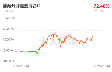 2025年以来,前海开源嘉鑫混合C基金的收益率已达73.46%,同类排名前2%,远超同类基金平均水平。近一年收益72.48%,年化回报超12%,显示出较强的盈利能力和穿越周期的稳健性。