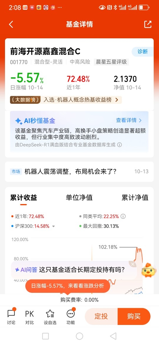 个人认为普通投资者可能更适合参与基金投资,不仅分散风险,有助于避免"踩雷",还降低投资门槛与专业要求。例如$前海开源嘉鑫混合C$ 涵盖人形机器人产业链诸多个股,有效分散风险,投资者无需自行选股,用比较低的成本布局中国科技资产。