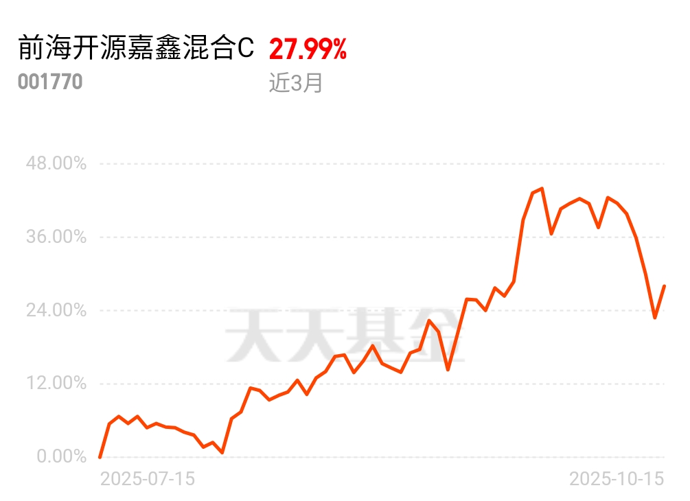 2024年末的基金持仓梳理中,我意外发现自己的投资组合里藏着一个"矛盾体"——前海开源嘉鑫混合C。这只成立于2016年的灵活配置基金,前三个季度还以国债和高等级信用债为主力,债券占比高达70.79% ,到了四季度却突然将股票仓位从28.58%飙升至80.10% ,重仓股清一色换成了机器人产业链标的。这场果断的调仓,成了我近一年投资经历中最惊心动魄也最值得回味的篇章。