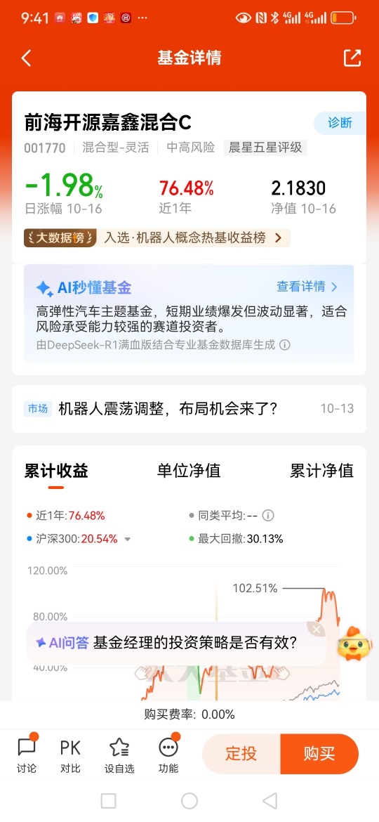 就像$前海开源嘉鑫混合C$ ,我曾经在上涨前卖出,结果卖出后强势上涨了三天,涨幅超过十个点。非常后悔没有继续持有,倒在了黎明前。所以对我们散户来说,对看好的赛道,耐心持有才是硬道理。