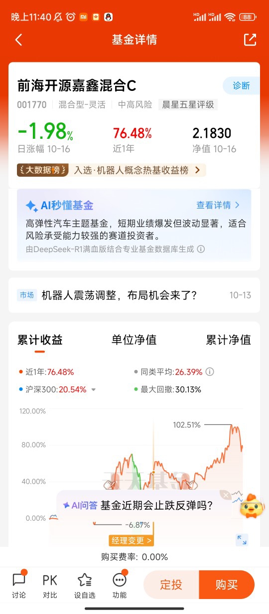 去年跟风买基金踩过不少坑后,我才明白:选对赛道比瞎忙活管用多了。这大半年盯着机器人板块布局,靠前海开源嘉鑫混合C(001770)实实在在赚了些收益,也攒下了些普通人能看懂的投资门道。