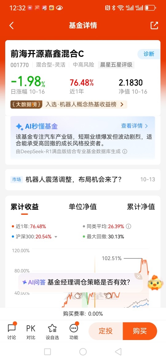 器人将成为我们生活中不可或缺的一部分。那么,作为一个投资者,是否也应该参与到人形机器人的热潮中,实现财富增值呢?答案是肯定的,可以选择这方面的基金积极参与,$前海开源嘉鑫混合C$ 就非常适合,重仓人形机器人概念个股,涉及人形机器人的方方面面,最近调整幅度较大,可以重点关注了。