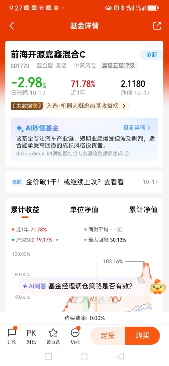 对于看好人形机器人产业,但又担心个股波动太大的投资者来说,$前海开源嘉鑫混合C$ 是一个不错的选择。大家可以通过天天平台轻松上车。同时,根据自己的实际情况选择定投还是一次性投资。需要注意的是,机器人产业属于长线赛道,需要耐心等待才能收获更大回报。
