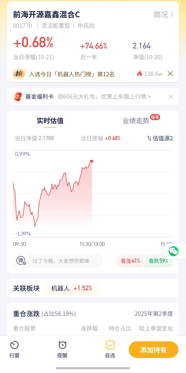 前海开源嘉鑫混合C今日预估涨幅+0.89%!混合基金今天有一定涨幅,继续观察表现