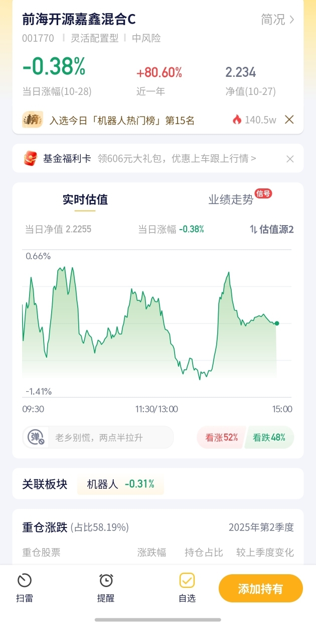 【前海开源嘉鑫混合C估值播报+10.28行情】