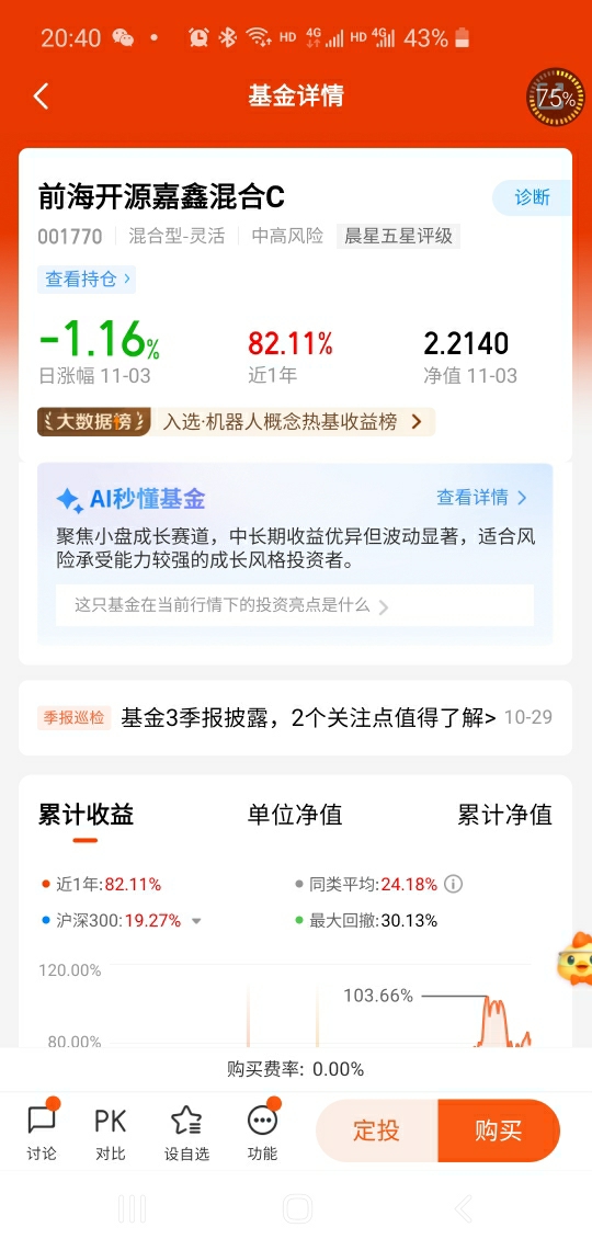 要说哪支混合基是凭机器人一炮走红,那非$前海开源嘉鑫混合C(001770)$莫属。