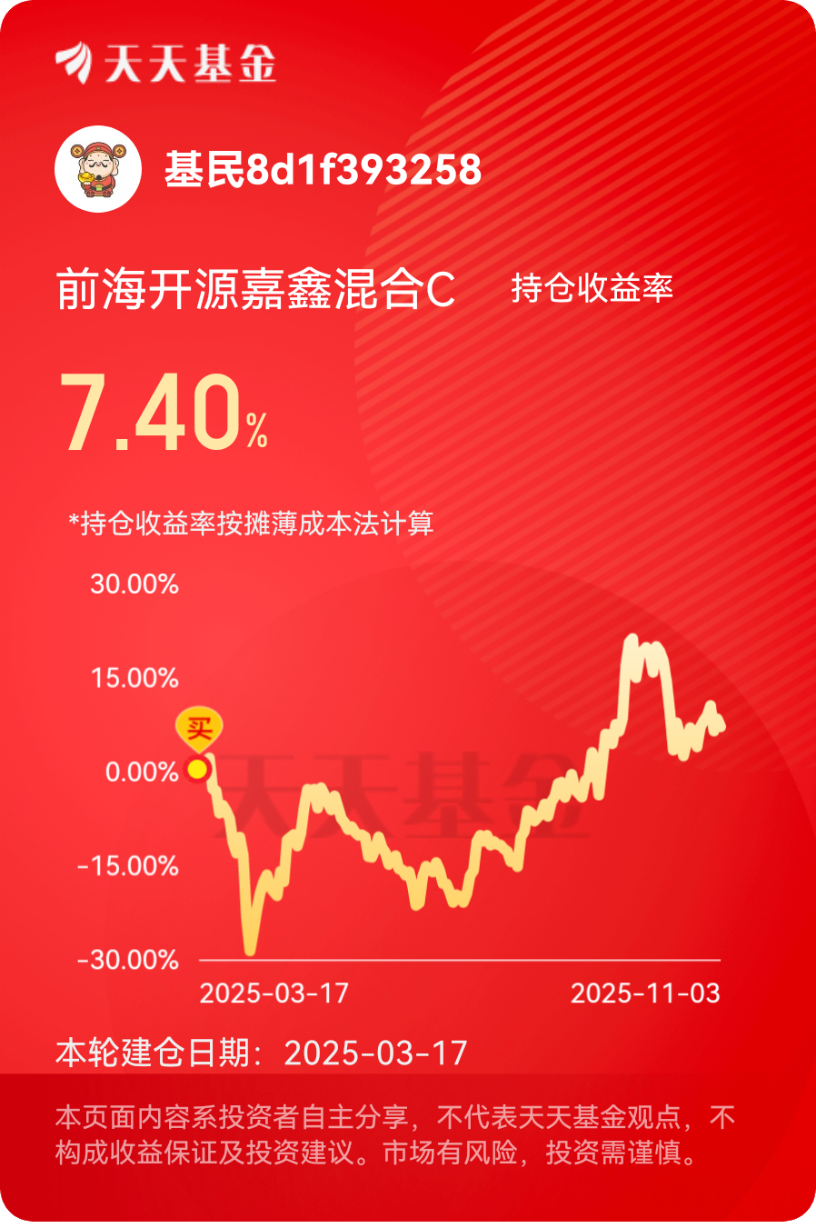 作为前海开源嘉鑫混合C(001770)的坚定持有人,必须晒一波我的“精准踩点”——看好机器人赛道时果断入局,这波操作直接让我收获了超预期的收益,更认准了这只基金的投资价值!