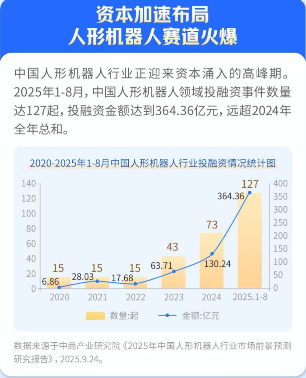 看到2025年1-8月行业投融资数据时,我更确定这不是短期热点:127起投融资事件、364.36亿元资金涌入,这个规模远超2024年全年总和。