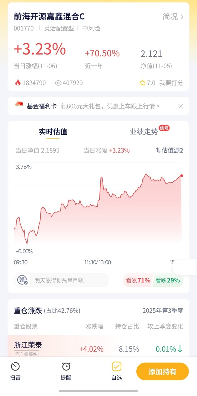 前海开源嘉鑫混合C今日预估涨幅3.23%!整体表现不错,值得关注后续走势