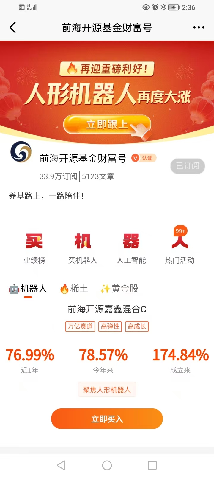 最后,我想跟各位老姐妹、老伙计们说一句:退休了,咱们的钱也不能闲着,要学会让钱生钱。但投资一定要选自己看得懂、信得过的赛道和基金,前海开源嘉鑫混合C(OTCFUND|001770)这只科技基,我已经替大家试过了,靠谱!如果你也想布局机器人赛道,又怕自己不懂选股,那就试试这只基金,相信我,长期持有,一定会有惊喜!