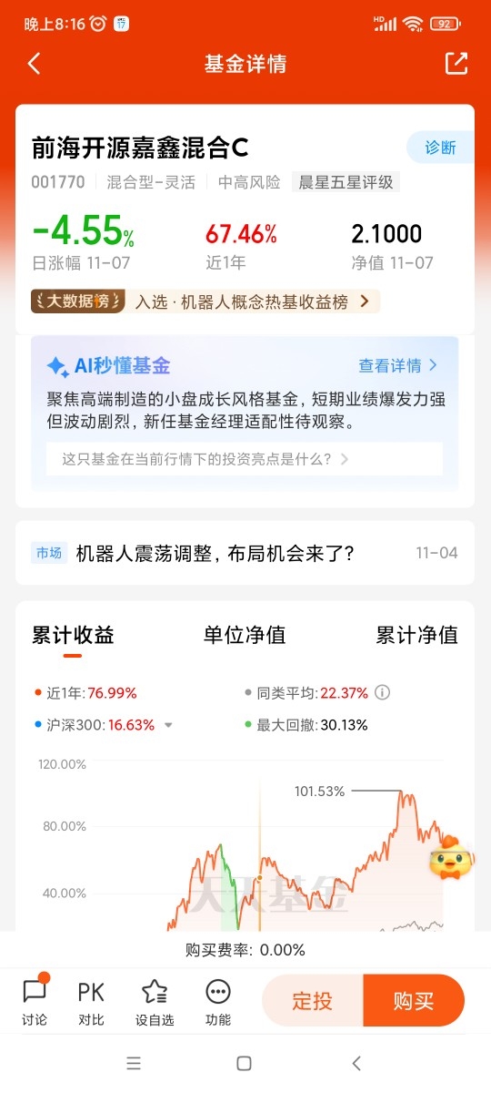 所以在我看来,【前海开源嘉鑫】混合基金凭借对机器人产业的精准布局、专业的投资管理和严格的风险控制,为投资者提供了参与机器人产业发展的优质工具。我觉得我们可以持续关注【前海开源嘉鑫】混合基金。@前海开源基金