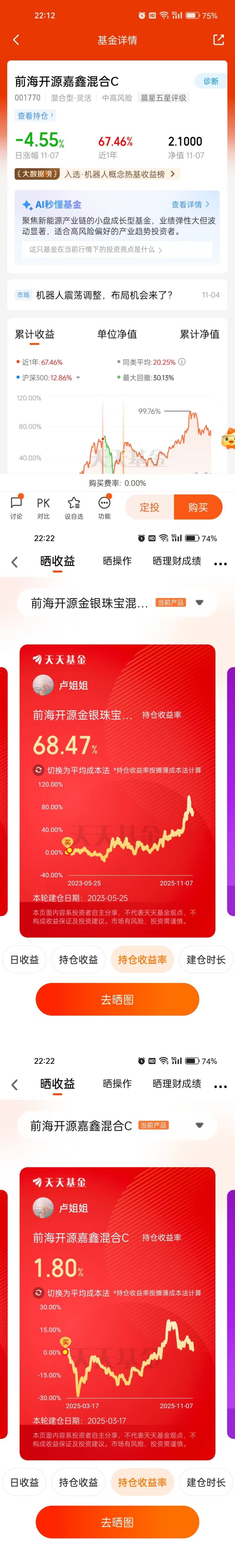 1,涨势凌厉。近一年该基金年内收益率达84%,远超同类平均水平,它就像一匹黑马,在人形机器人的赛道上一路狂奔,把其他基金远远甩在身后。这种短期内的爆发力,不仅展现了基金对市场趋势的精准把握,也让我看到了其巨大的盈利潜力。该基金弹性大,做t体验感更好,又有前海开源大厂背书,持有放心。