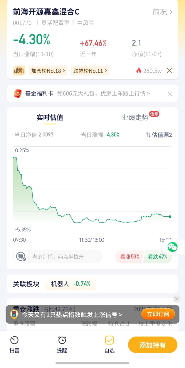 10. 【前海开源嘉鑫混合C估值播报+11.10行情】