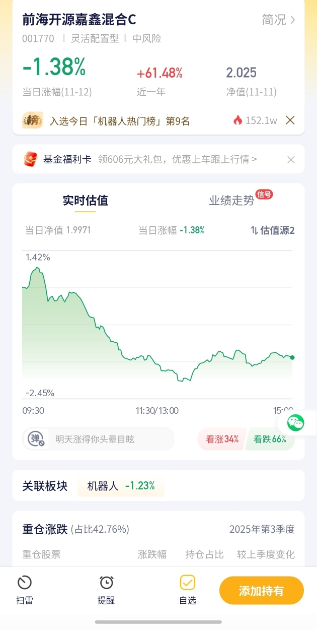 前海开源嘉鑫混合C今日预估涨幅-1.38%!混合板块小幅调整,该基金领跌自选,需关注