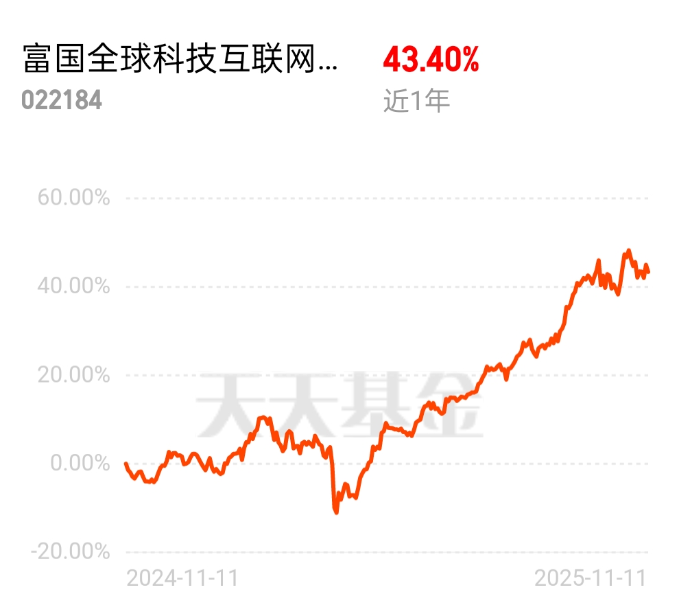 $富国全球科技互联网股票(QDII)C$,近一年涨43%,领先纳指不少,同类里还
