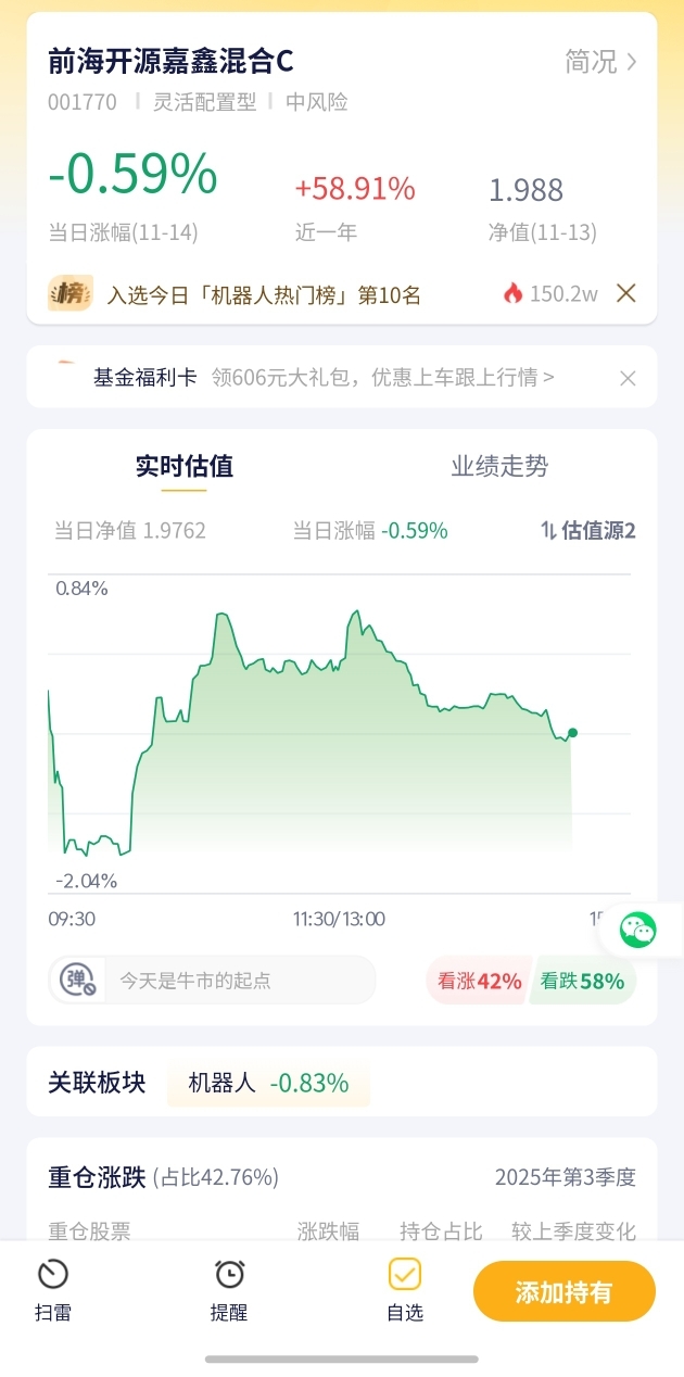 前海开源嘉鑫混合C今日预估涨幅-0.59%!混合基金今日小幅度调整,前期涨了0.35%,波动属于正常范