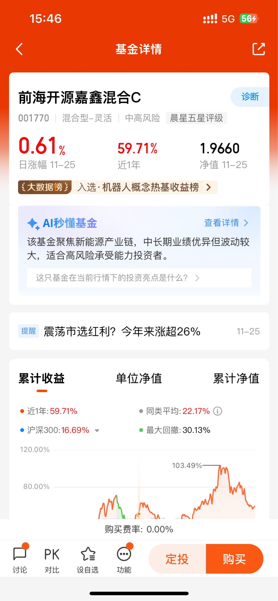 初识这只基金,源于2024年下半年对机器人产业的深入研究。当时政策密集落地,工信部推进工业机器人规模化部署,多地推出专项支持政策,而特斯拉、优必选等企业的量产计划,让我预判人形机器人即将进入“爆发临界点”。对比多只相关基金后,前海开源嘉鑫混合C的灵活配置策略打动了我——其0%-95%的股票仓位调整空间,既能在行业上涨时全力进攻,又能在震荡期通过债券资产平滑风险,完美匹配我对“攻守平衡”的需求。