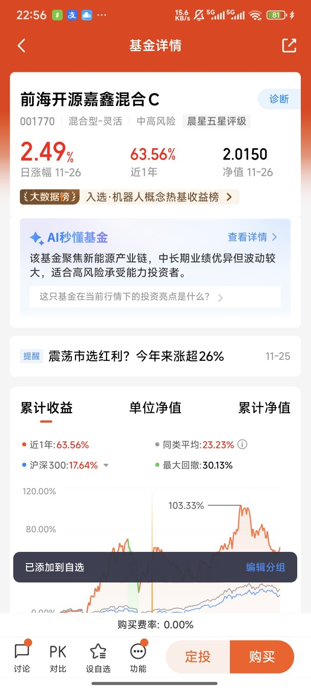 作为一个深耕基金投资5年的老玩家,我曾踩过追涨杀跌的坑,也体验过满仓踏空的无奈,直到遇见前海开源嘉鑫混合C,搭配上“机器人投资策略”,才真正实现了“躺着赚钱”的从容——不仅躲过了今年3次市场回调,还斩获了22.6%的年内收益,今天就把我的“神操作”和机器人投资经历毫无保留地分享给大家。