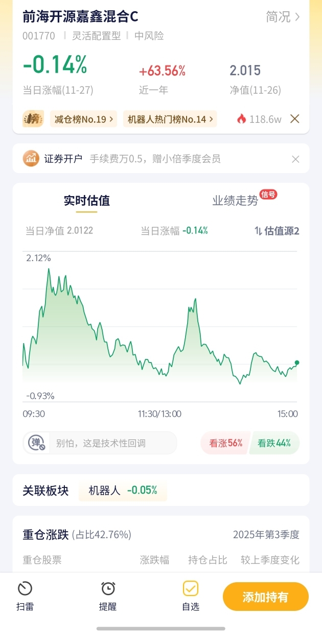 前海开源嘉鑫混合C今日预估涨幅-0.14%!混合基金小幅回调,整体还是在合理波动范围内,不用太担心