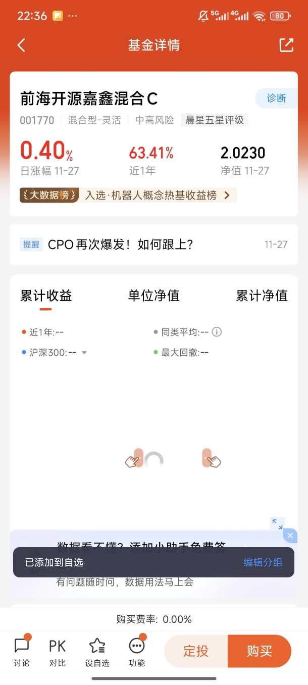 第一次听说“机器人投资”,我还挺怀疑:机器能比人会选股?后来才知道,这东西不是瞎猜,是靠大数据和模型干活。当时平台给我做了个风险测评,说我是“稳健偏进取”,推荐了前海开源嘉鑫混合C,还建议用“定投+动态调仓”的方式投。我抱着“先投1000块试试水”的想法,设置了每月10号自动扣500块,没想到这一投,就坚持了两年。