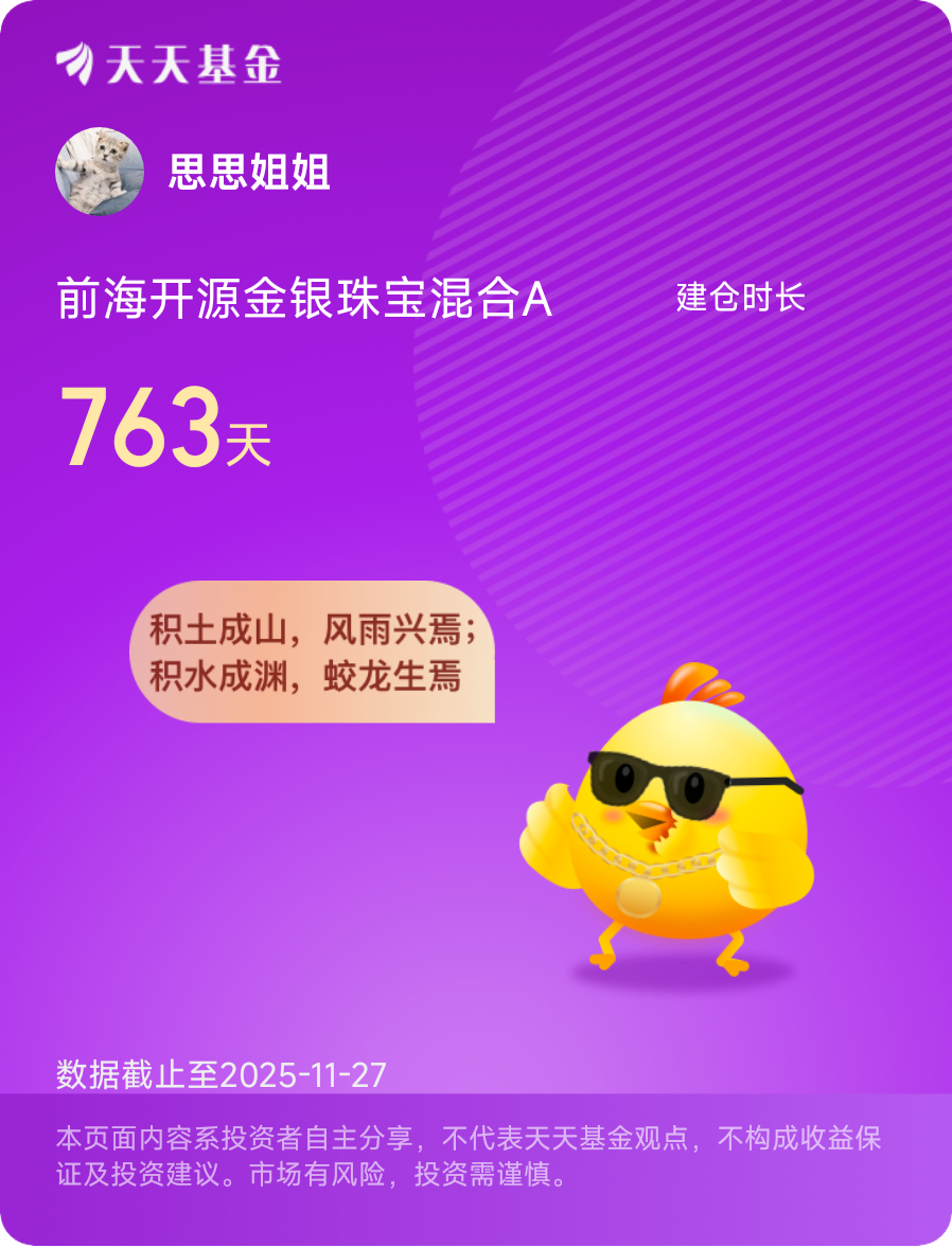 现在我不仅自己定投,还把这方法推荐给了爸妈。他们以前只敢存定期,我跟他们说"这就是自动存、自动赚的智能理财",他们每月投500块,半年下来也有了不少收益。其实投资哪有那么多"神操作",对我们普通人来说,选一只靠谱的基金,用机器人投顾帮自己守住纪律,把闲钱交给时间,慢慢积累的收益就很可观。如果你来投前海开源嘉鑫混合C,不妨试试这种"机器人+定投"的组合,不用费心思,就能稳稳分享科技成长的红利。@前海开源基金